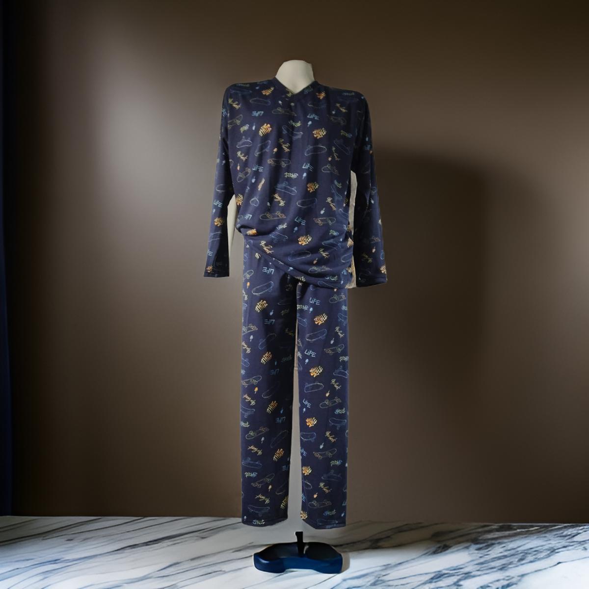 Conjunto pijama hombre pantalón largo camisa manga larga en algodón. Tallas S, L y XL.